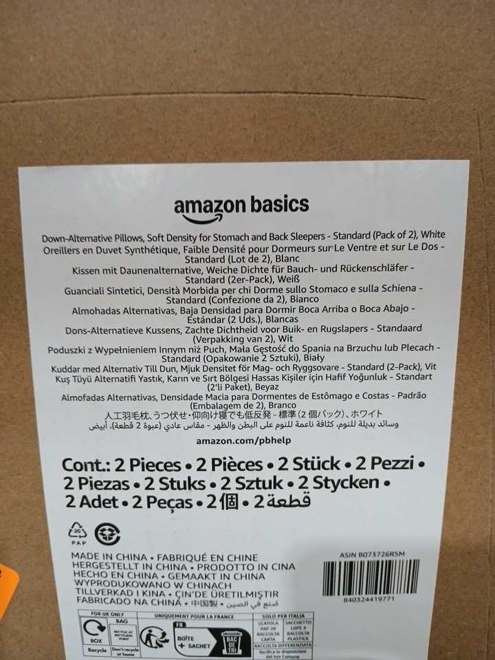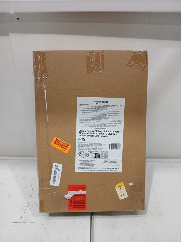 2PK AMAZONBASICS soft DENSITY DOWN ALTERNATIVE BED PILLOWS FOR STOMACH AND BACK SLEEPERS - QUEEN - 20" x 30" - WHITE