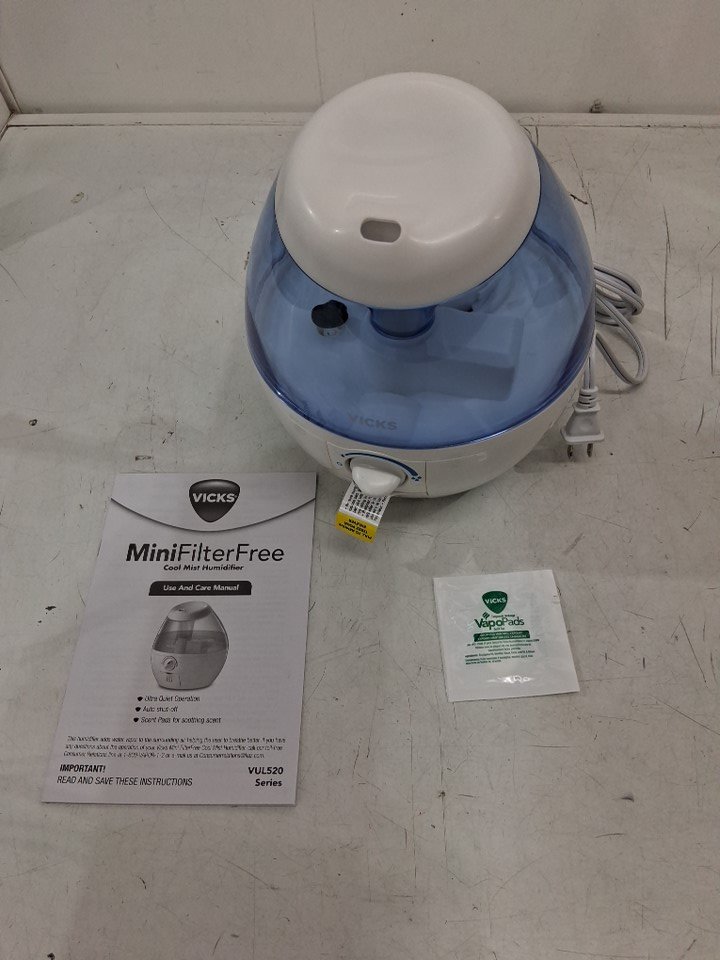 VICKS MINI FILTER-FREE COOL MIST ULTRASONIC HUMIDIFIER - 1.9L - WHITE (MODEL: VUL520WC)