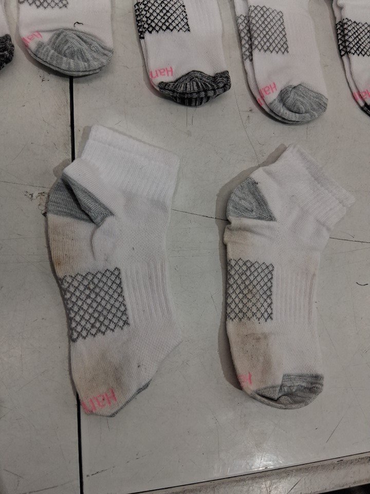 One pair of socks has signs of previous use such as dirt/discolouration on socks. The remaining pairs appear not used.