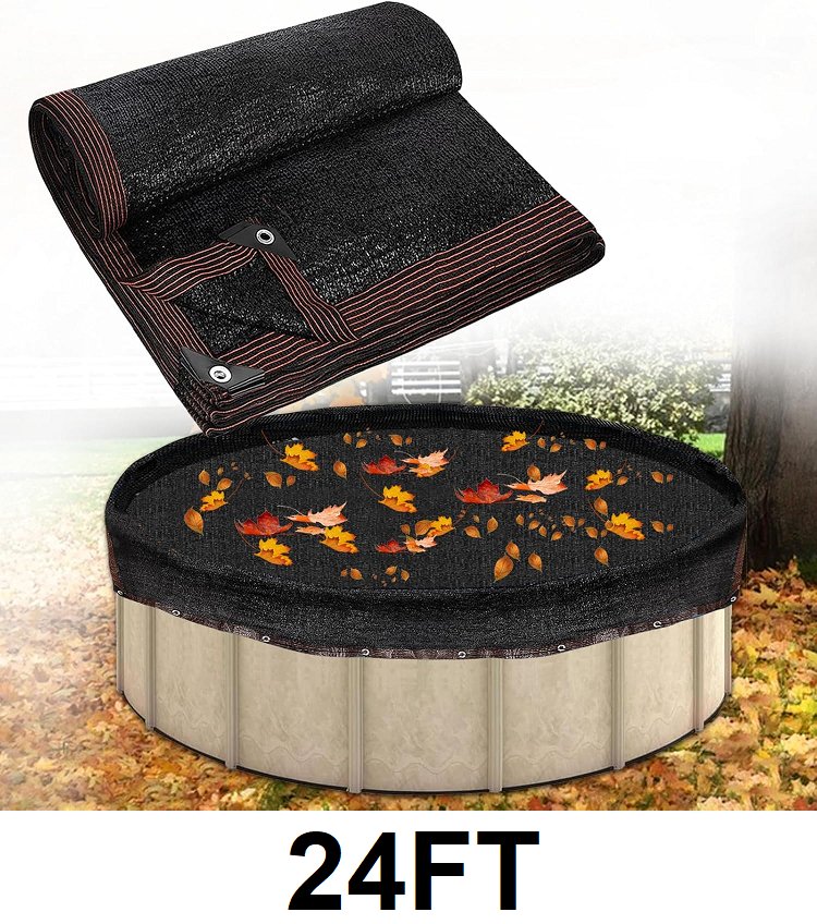 round leaf net pool cover for inground and above ground pools - 24ft - black