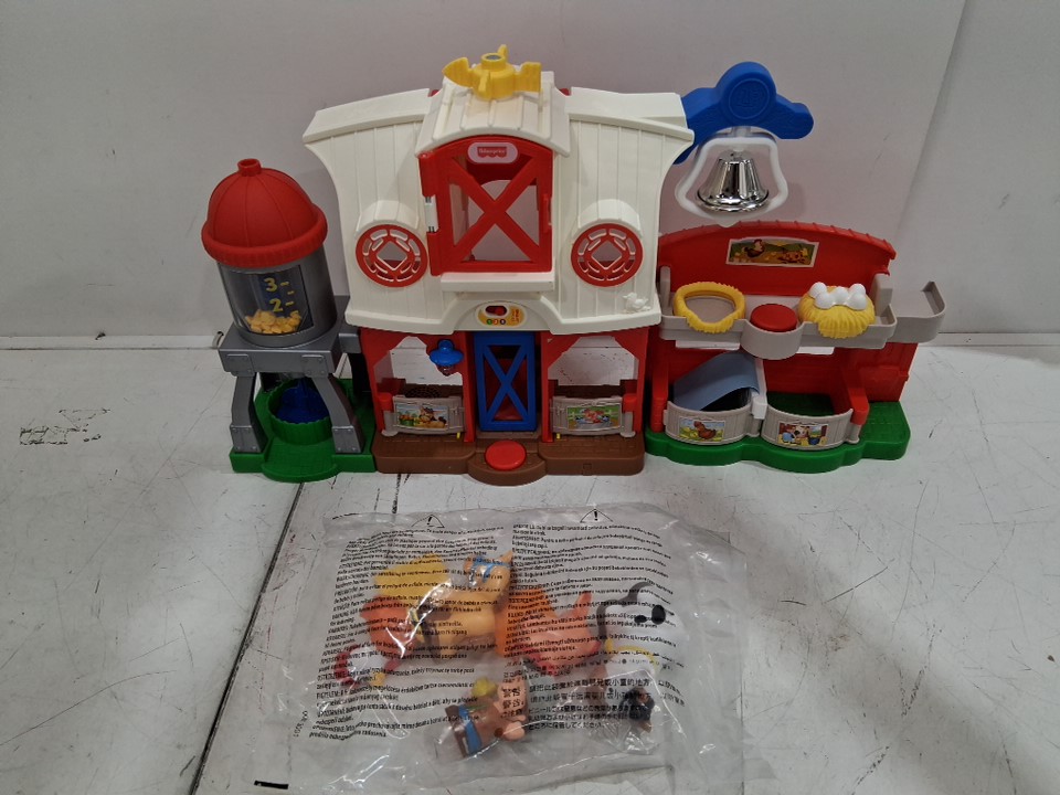 FISHER-PRICE LITTLE PEOPLE CARING FOR ANIMALS FARM RESTAGE CHILDRENS TOY, TEACHES COUNTING, OPPOSITES, ANIMAL SOUNDS AND COLORS (MODEL: jbh64-9997)