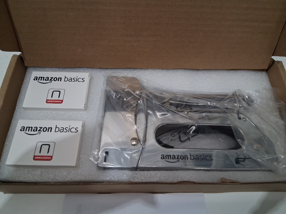 amazon basics Manual Staple Gun for Upholstery and Carpentry - for 6 to 14mm - silver