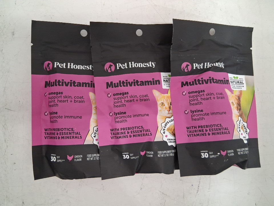 3 (30PK) Pet Honesty Dual Texture Daily Multivitamin for Cats - Chicken Flavor (90 Day Supply Total)