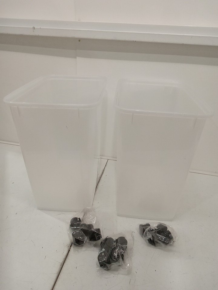 Missing the lids. Has some pet hair