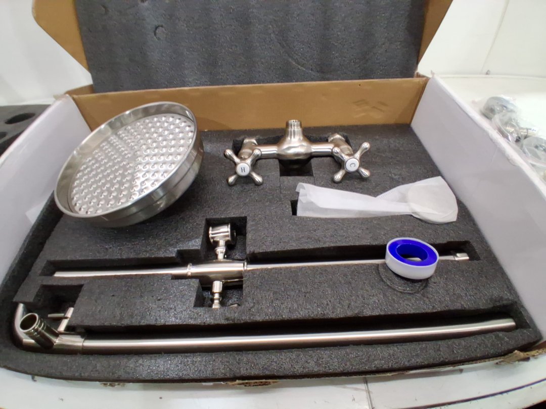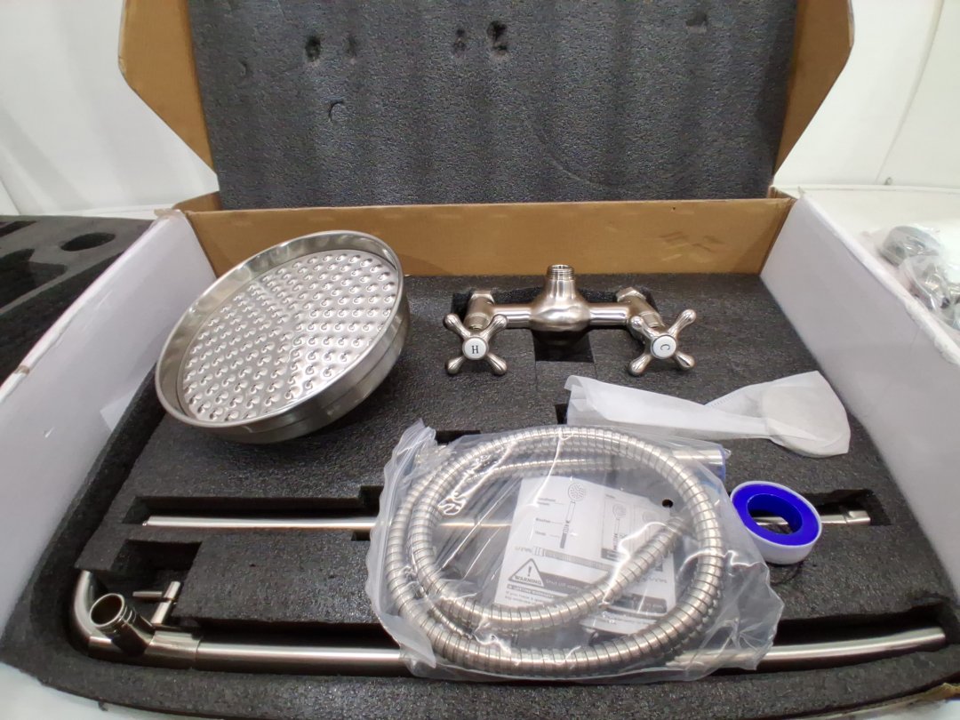 gotonovo Bathroom Exposed Shower Faucet WITH Rainfall Shower Head, Tub Spout and Handheld Spray - 39.4" - 55" - POLISHED CHROME