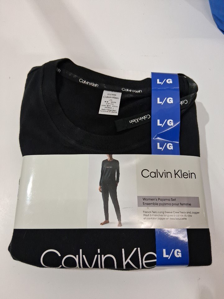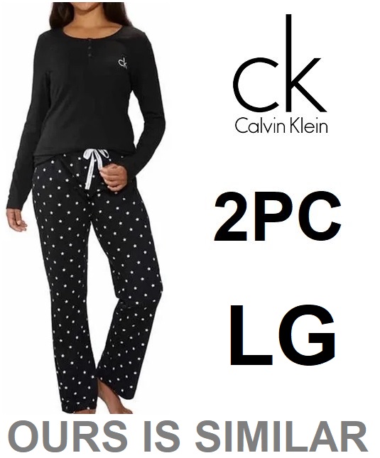 2pc Women's Calvin Klein long sleeve and pant Fleece Pajama Set - LG - Black (MODEL:2021888)