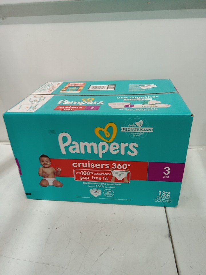 132PK PAMPERS CRUISERS 360° GAP-FREE FIT disposable baby DIAPERS - SIZE 3 (16-28LBS)