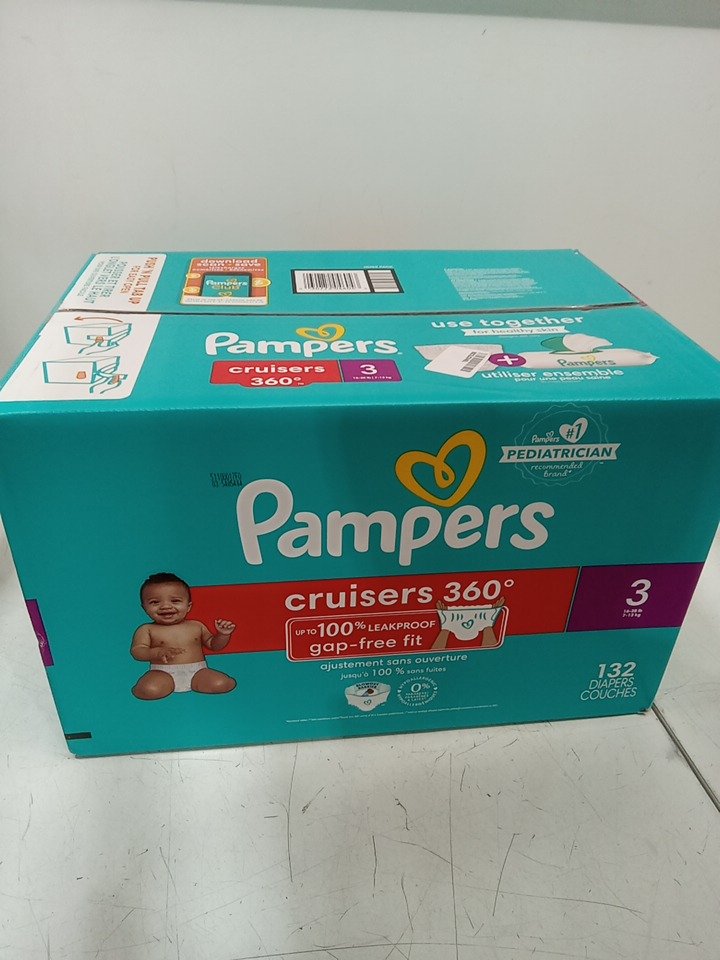132PK PAMPERS CRUISERS 360° GAP-FREE FIT disposable baby DIAPERS - SIZE 3 (16-28LBS)