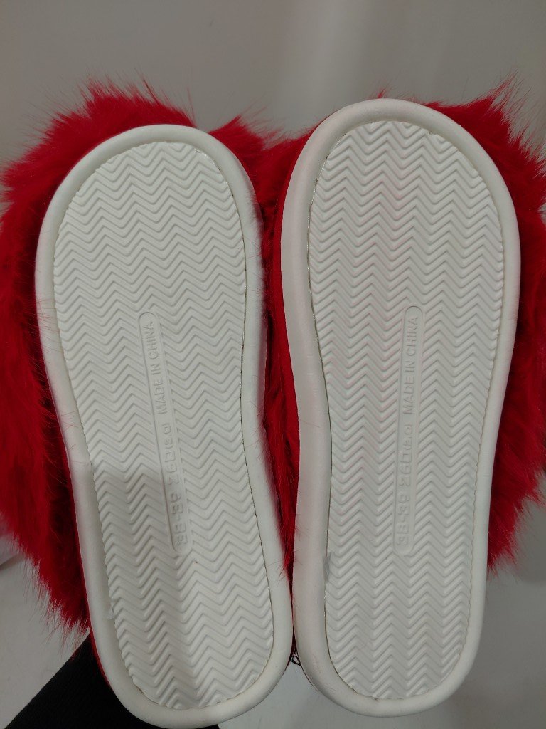 womens slip on fluffy faux fur slippers - 8 - red