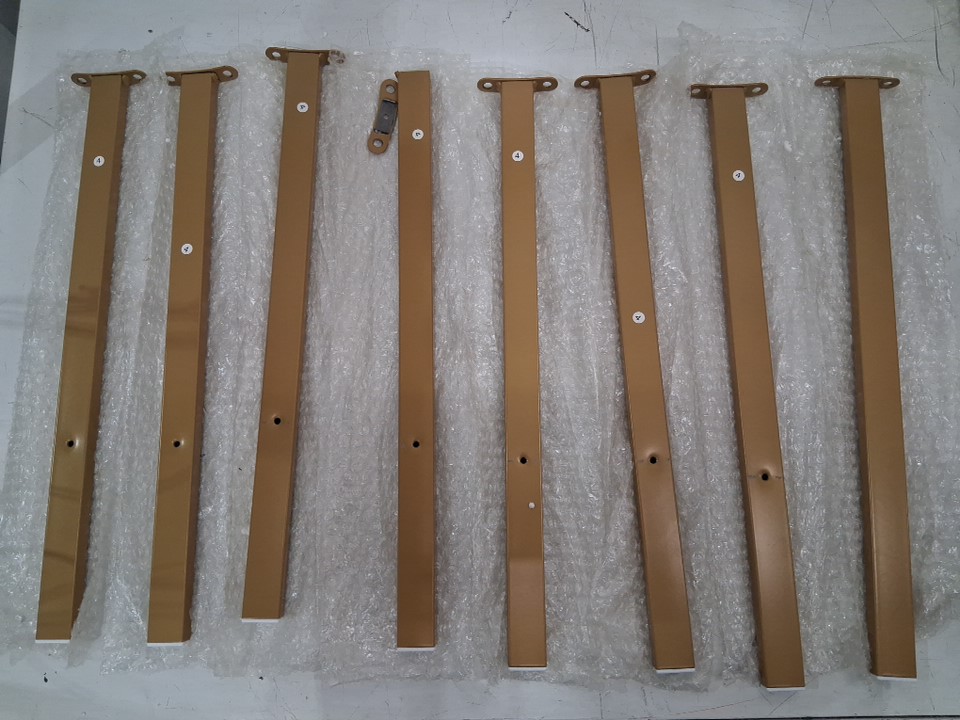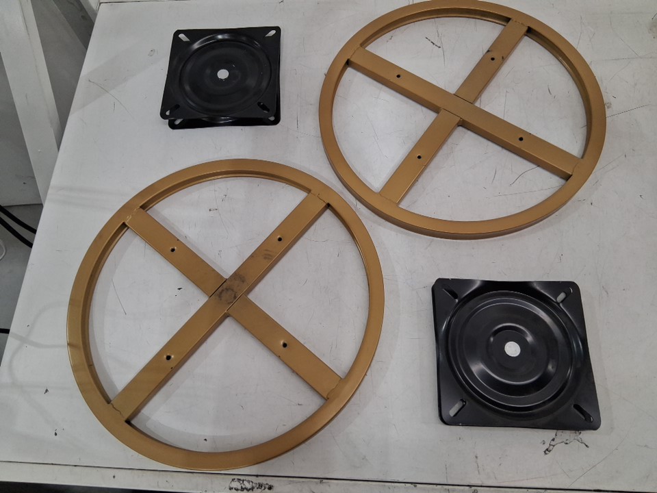 One leg attachment has broken off. Scuff marks on swivels indicate prior assembly. (See photos)