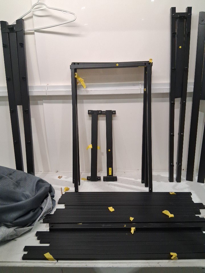 there is scratches present on the bed frame pieces and some marks on the paint. and some indentations which look like marks where a bolt was