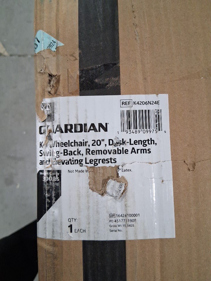 MEDLINE GUARDIAN k4 WHEELCHAIR - 16" - 300LB CAP - BLACK (MODEL: K4206n24e)