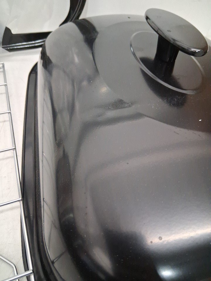 item has some marks in the inside from previous use also the lid has a very small dent , please refer to pictures tested for power