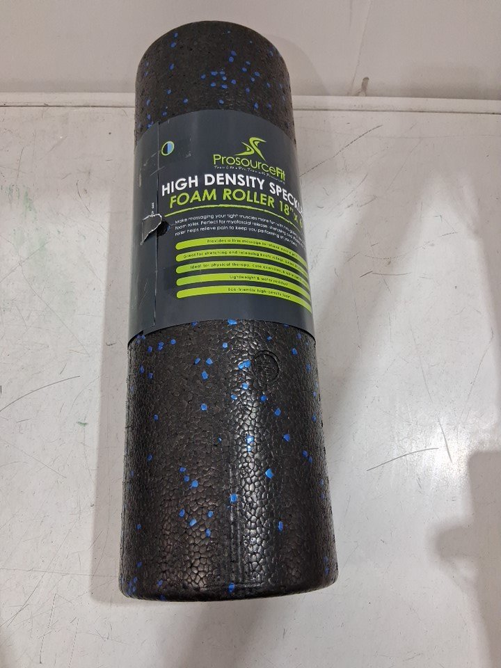 PROSOURCEFIT HIGH DENSITY speckled FOAM exercise ROLLER - 18" X 6" - BLACK/blue
