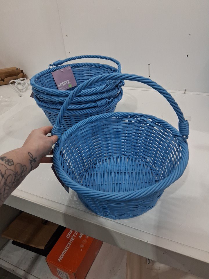 4PK spritz Willow Plastic Wicker Easter Basket - 12" - blue