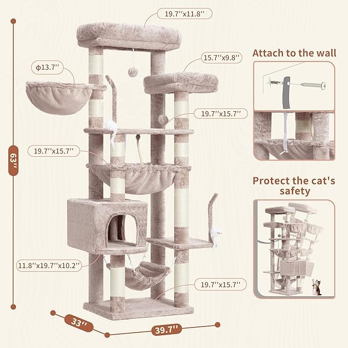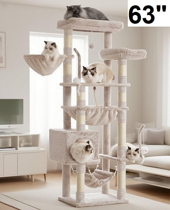 gitelsnour cat tree with two platforms and scratching posts - 63" x 33" x 39.7" - mushroom (model: gct020mu)