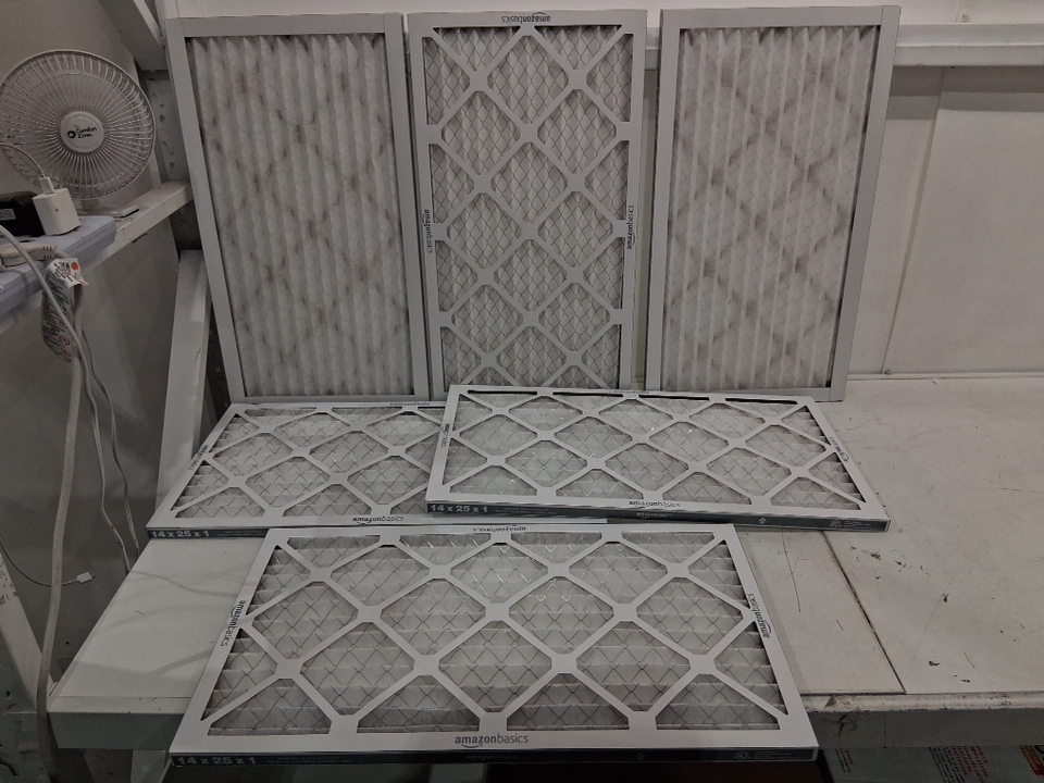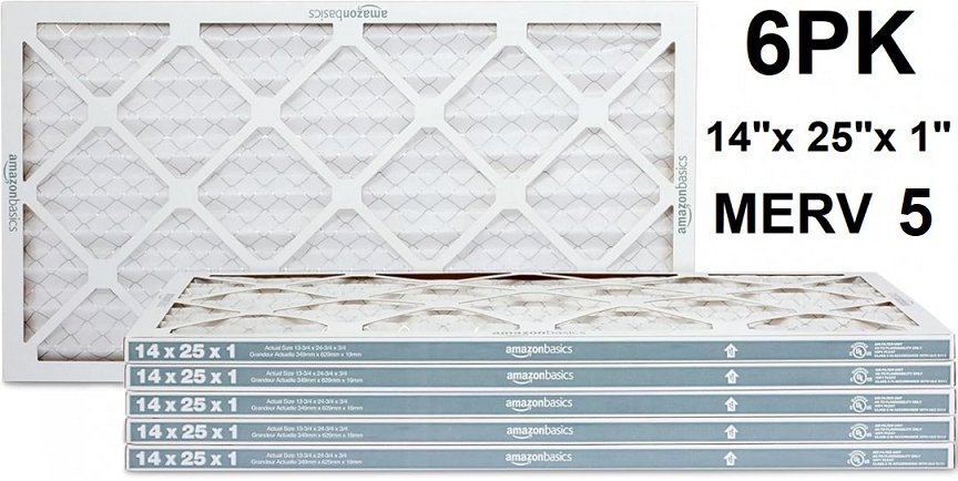 6pk amazon basics replacement ac furnace air filters - 14" x 25" x 1" - merv 5 - white