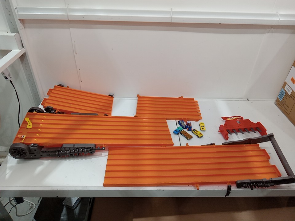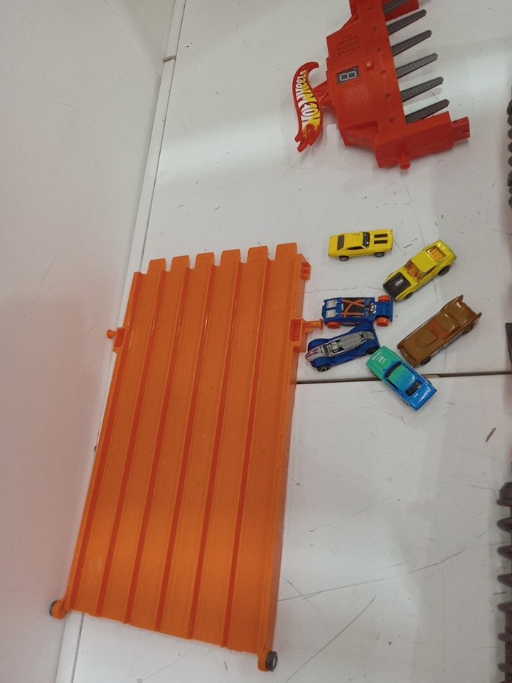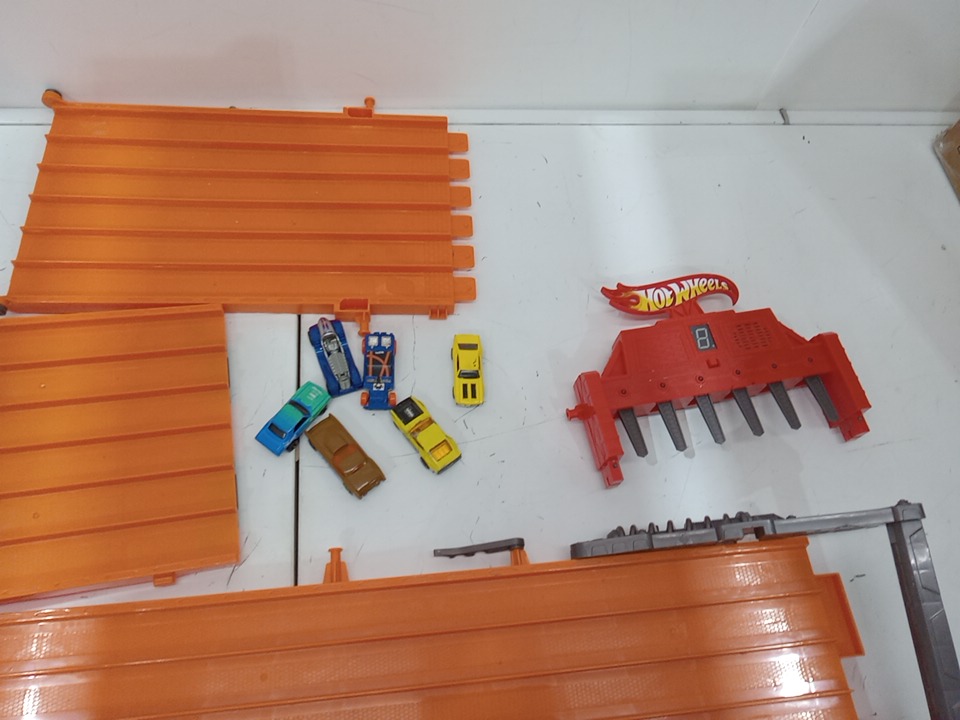there are some marks on the track set and the cars are not from the original set put a random mixture of various hot wheels and die cast cars