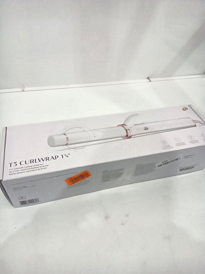 t3 curlwrap automatic rotating curling iron with long barrel (5.5"l) - timer settings and 9 heat settings - 1.25" - white/rose gold - (model: 76680).