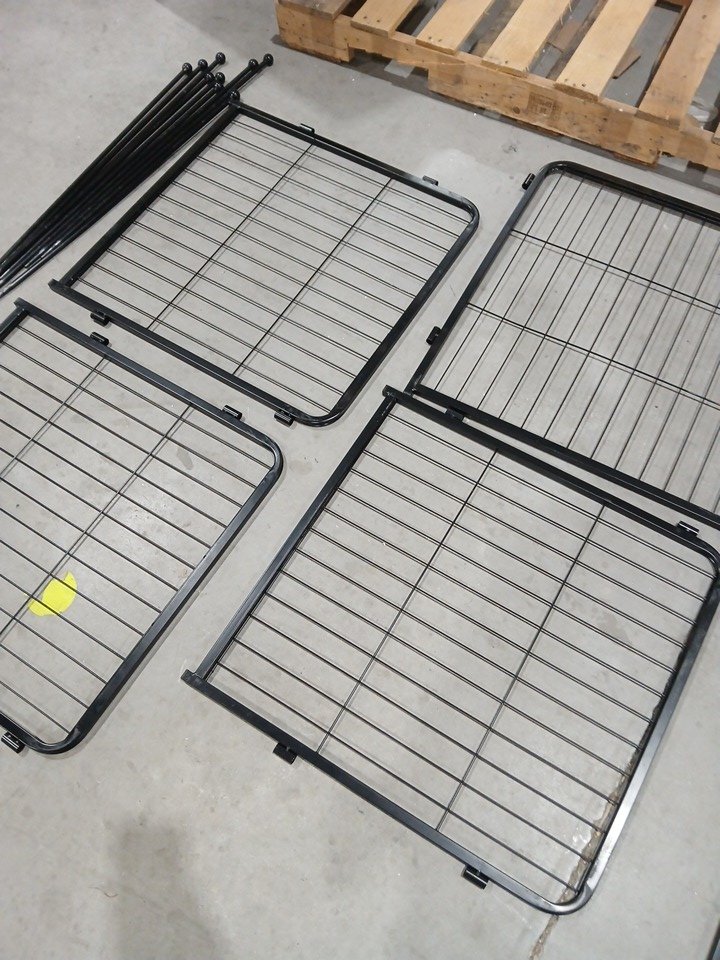Please note there are some minor bends to the metal barriers, nothing that should affect function. Additional generic hardware may be required for assembly.
