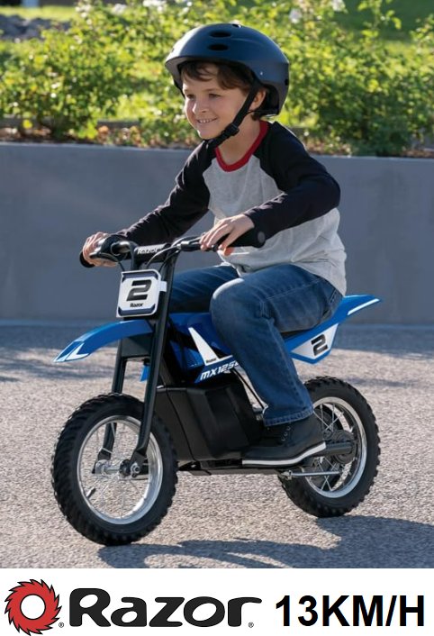 RAZOR Kids MX125 DIRT ROCKET ELECTRIC BIKE WITH REAR WHEEL DRIVE - Kids 7 and Up - 13KM/H - 100W Blue (MODEL:15118244)