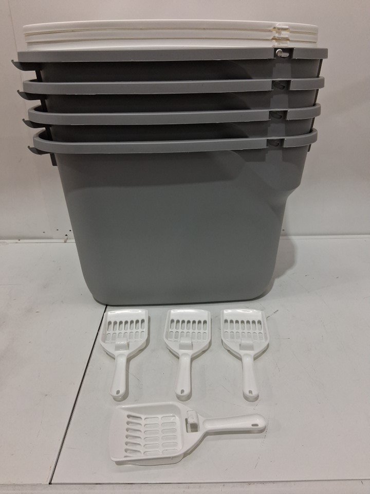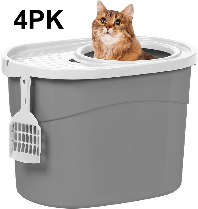 4PK iris usa top entry Oval Cat Litter Box with Catching Lid and Scoop - grey/white (model: