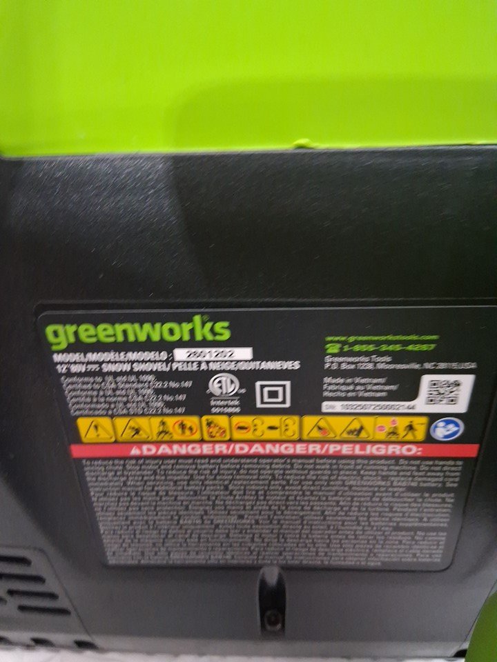 GREENWORKS CORDLESS SNOW SHOVEL *TOOL ONLY* BATTERY and CHARGER NOT INCLUDED - 80V - 12" - Green (MODEL: SS80L02)