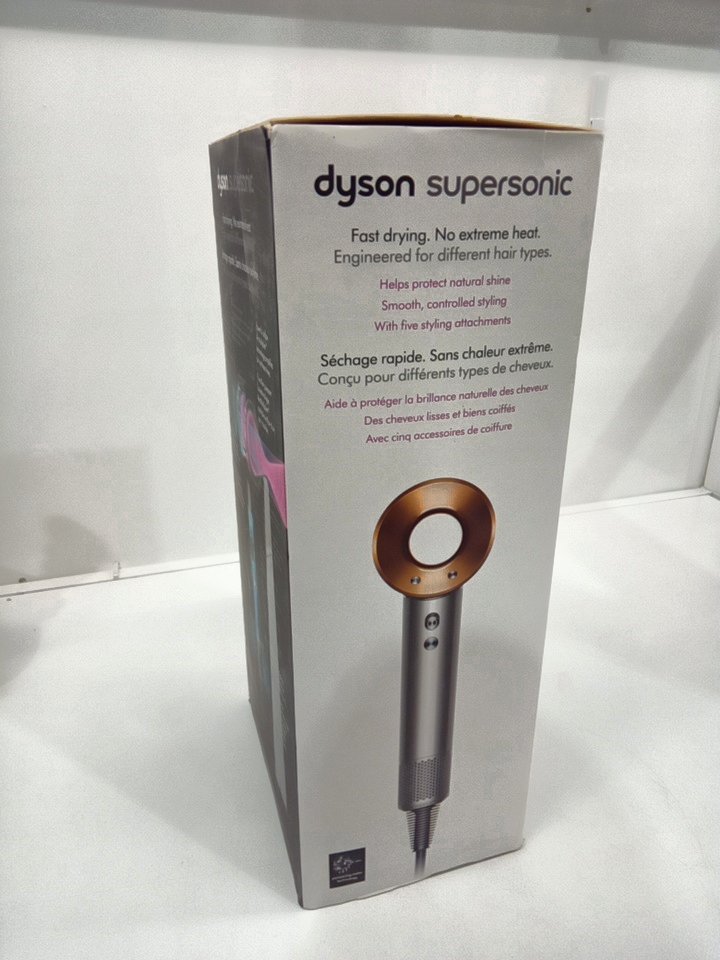 DYSON SUPERSONIC HAIR DRYER WITH STYLING CONCENTRATOR, SMOOTHING NOZZLE AND DIFFUSER - bright nickel and copper - (model: hd07).