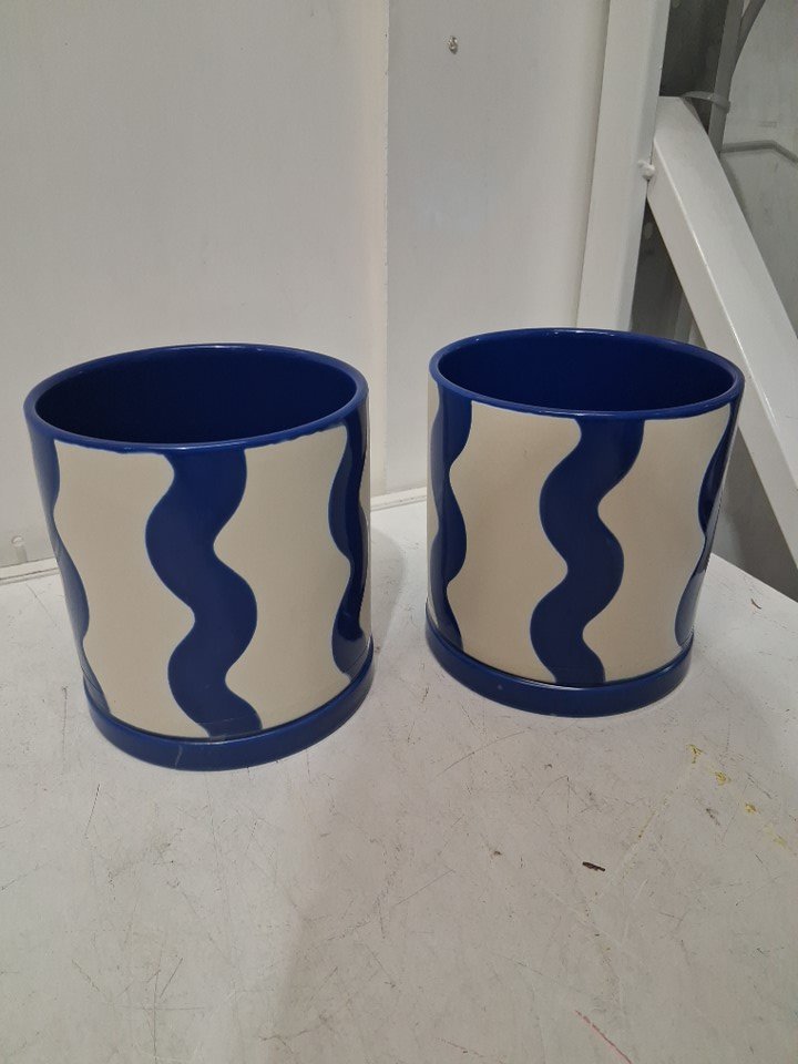 2PK Room Essentials Wavy Ceramic Planter - 5.67" x 5.67" x 5.9" - Blue/White