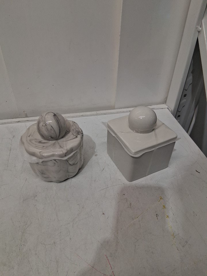 2PC Target Bullseye Decorative Cannisters - 5" - White/Marble