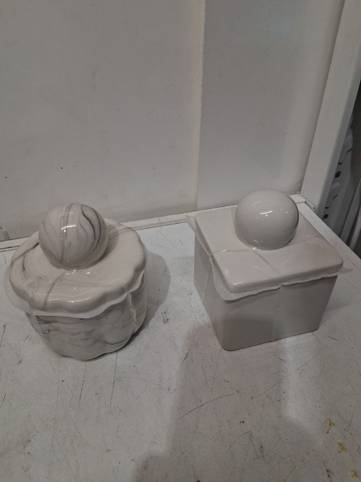 2PC Target Bullseye Decorative Cannisters - 5" - White/Marble