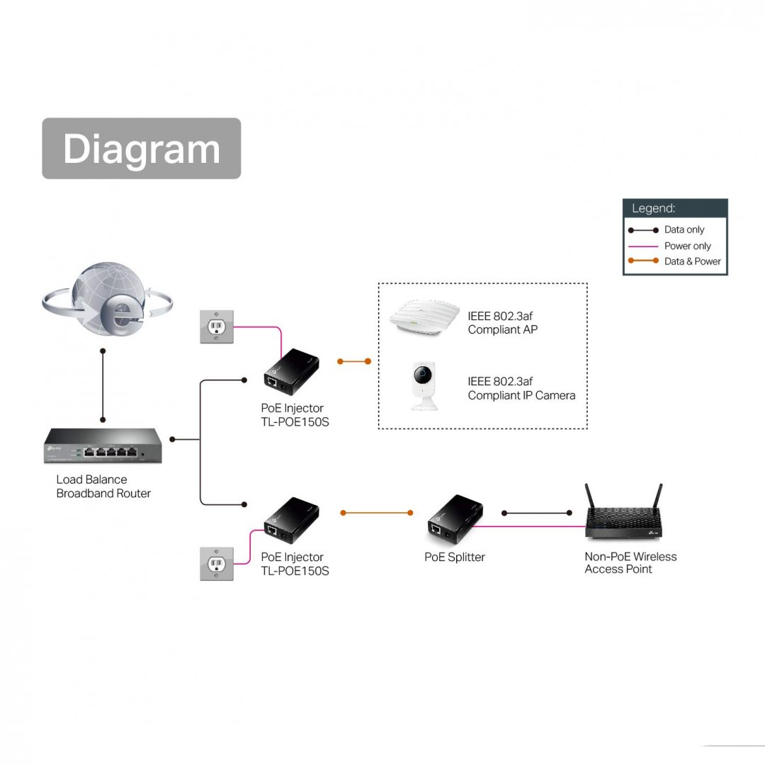 TP-Link Gigabit PoE Injector Adapter, IEEE 802.3af compliant, Up to 100 meters (328 Feet) - Black (model: TL-PoE150S)