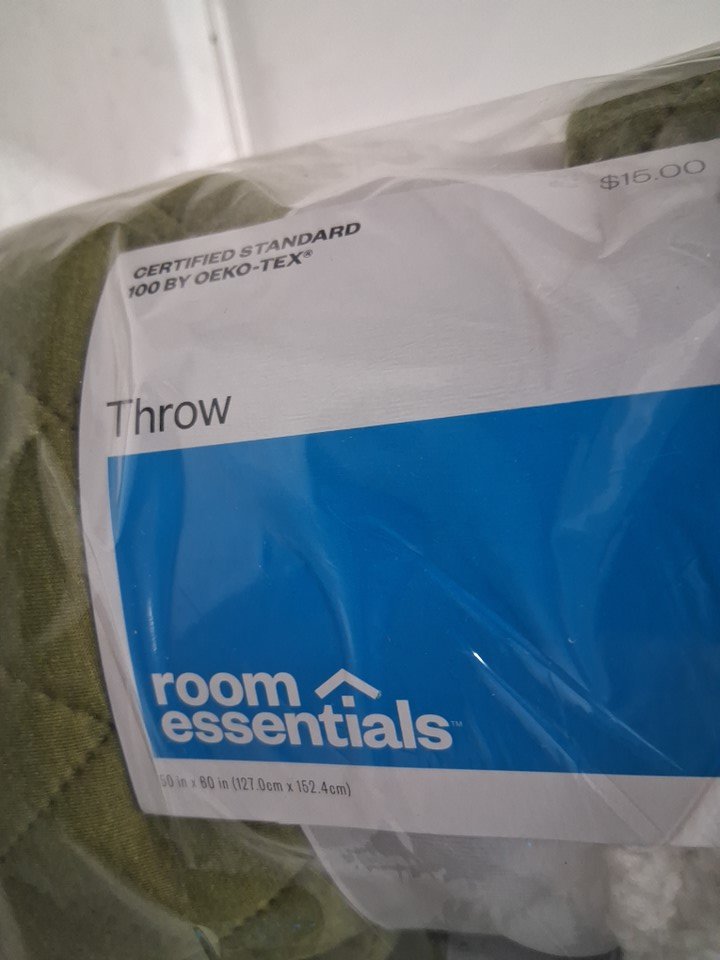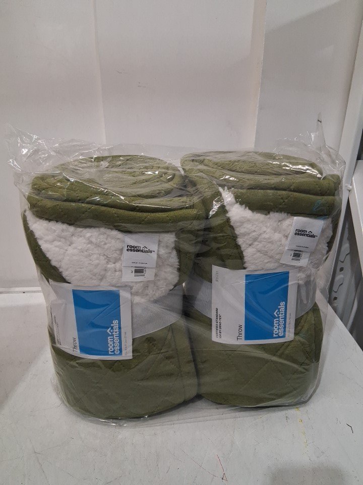 Room Essentials Quilted Jersey Throw Blanket with Faux Shearling Reverse Heathered - 50" X 60" - GREEN