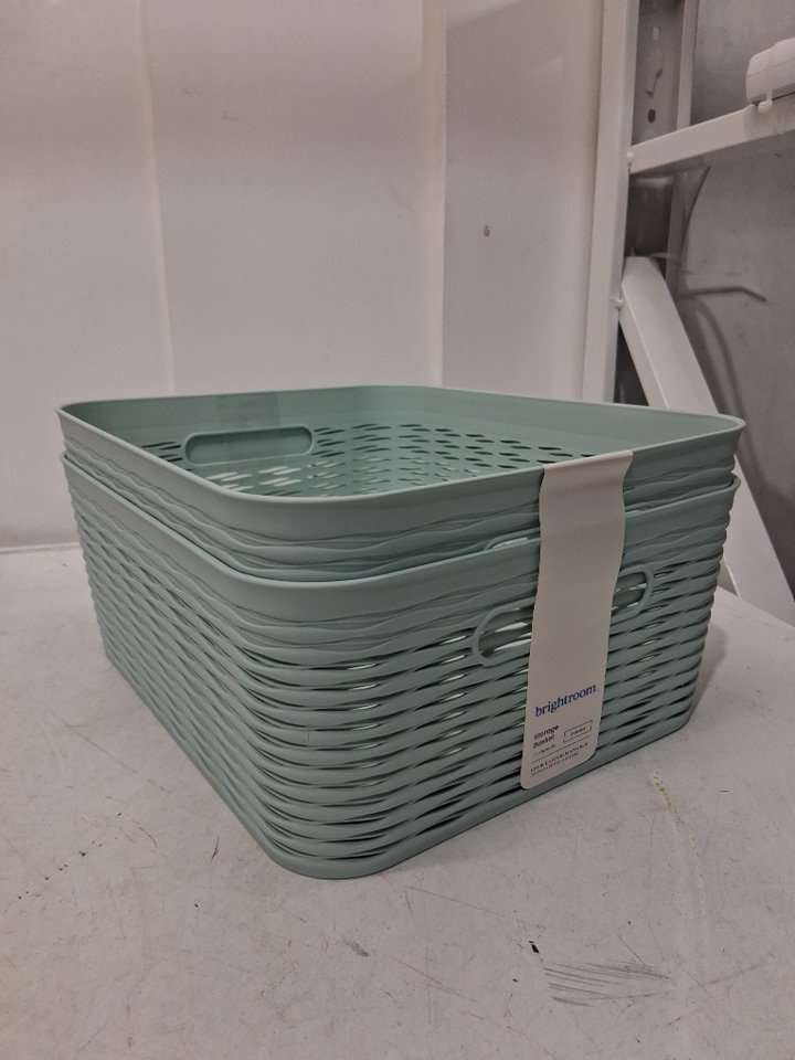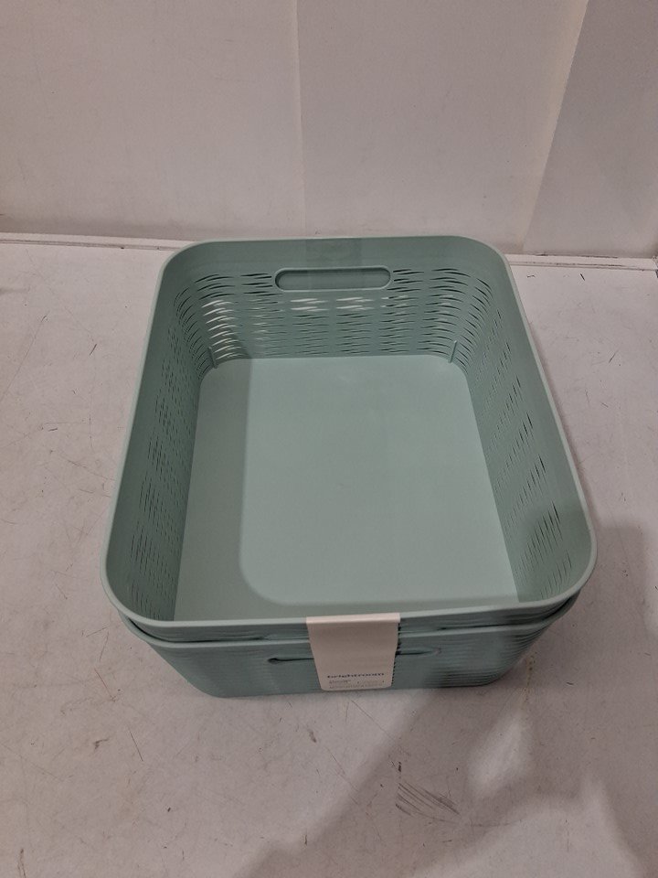 2PK Brightroom Wave Medium Decorative Basket - 11L Cap - 13.8" x 11.3" x 5.3" - Mint (Model: 002-07-5769)