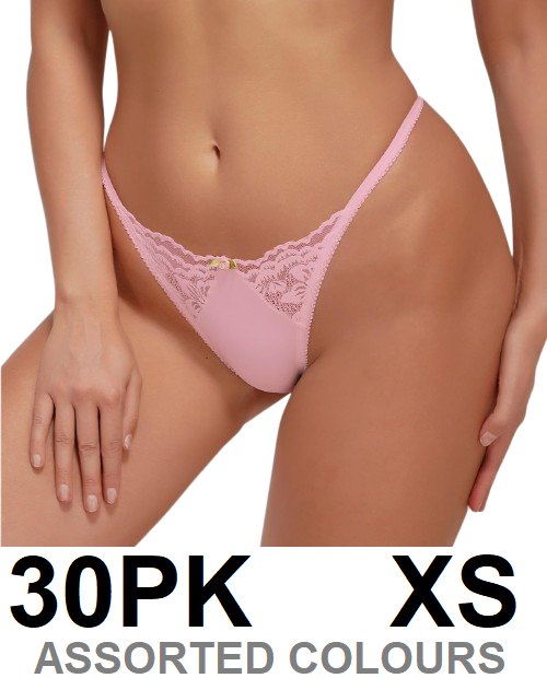 30PK WOMEN'S low rise floral lace thong underwear - extra small - various colours