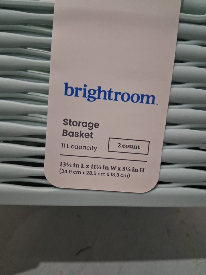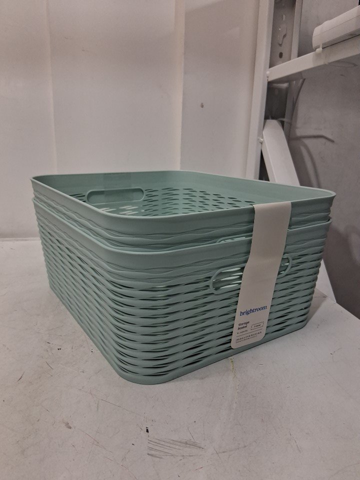 2PK Brightroom Wave Medium Decorative Basket - 11L Cap - 13.8" x 11.3" x 5.3" - Mint (Model: 002-07-5769)