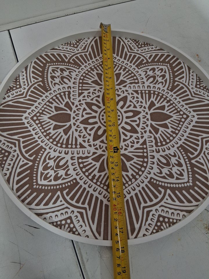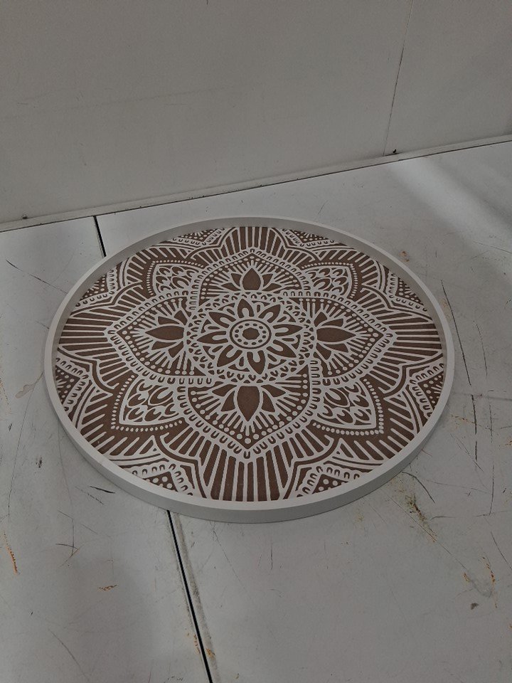Hanobe Large Round Wood Decorative Tray - 17" - Brown/White