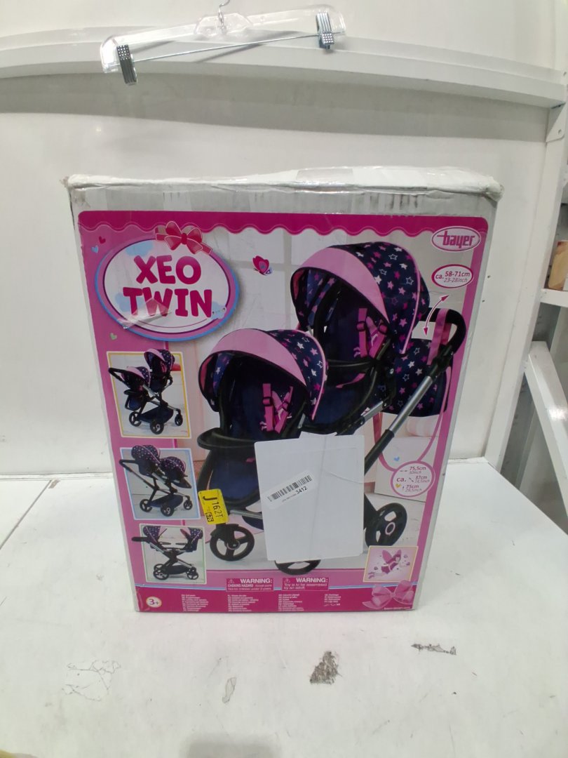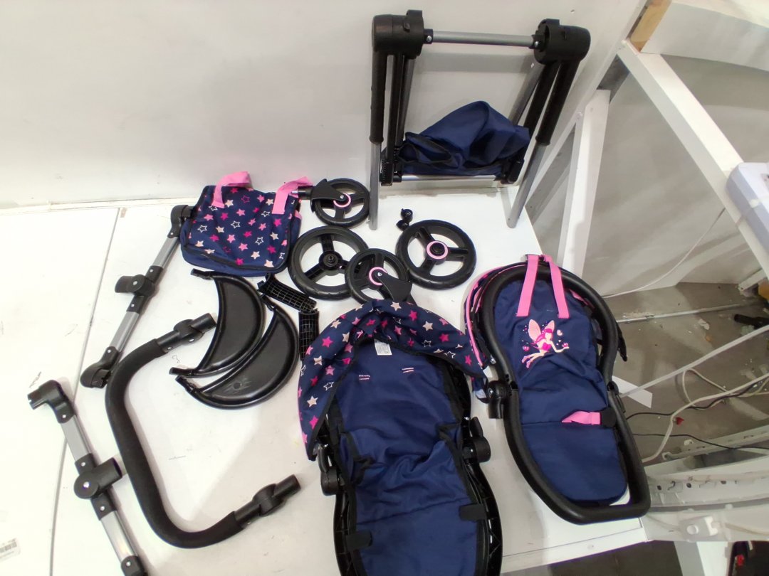 Bayer Design - twin Dolls Pram Xeo - ADJUSTABLE HANDLE Baby Stroller for Dolls with childrens side Bag - navy/pink - (MODEL: 26716aa)