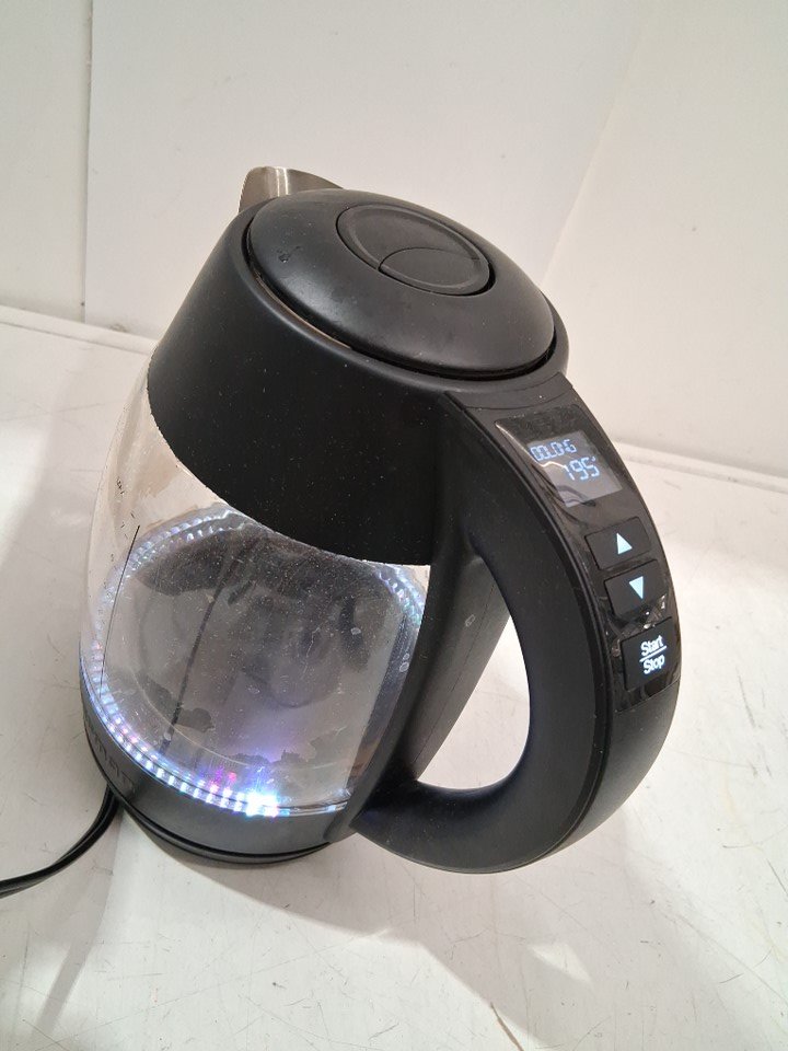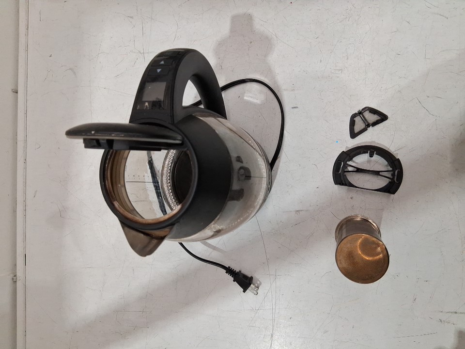 item has some tea or coffee stains on the inside of the kettle and steeper indicating prior light use. tested for power.