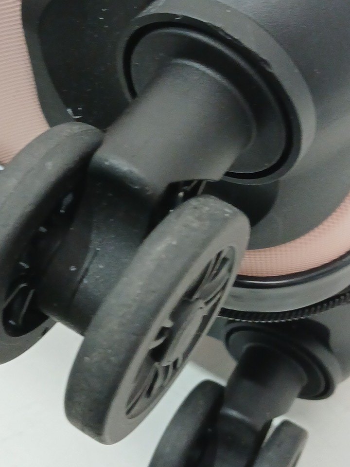 The wheels show some signs of use and the surface is scuffed.