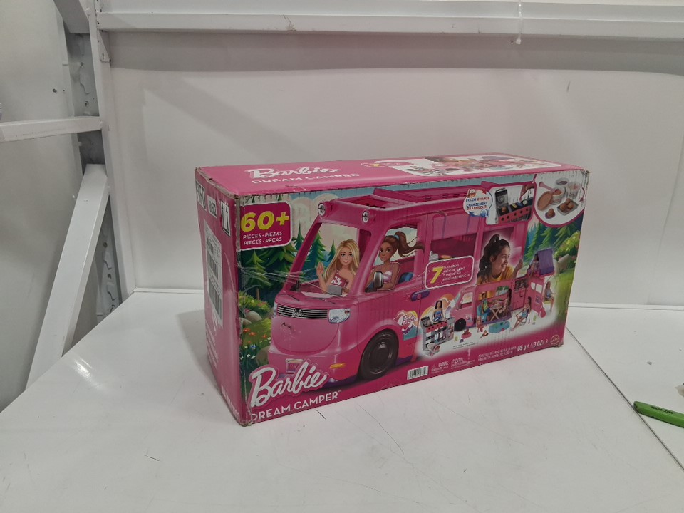 60+PC Barbie Dream Camper Playset With Roof Tent and BBQ Grill (model: ‎HRJ78-9564)