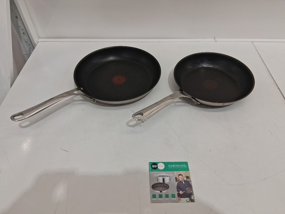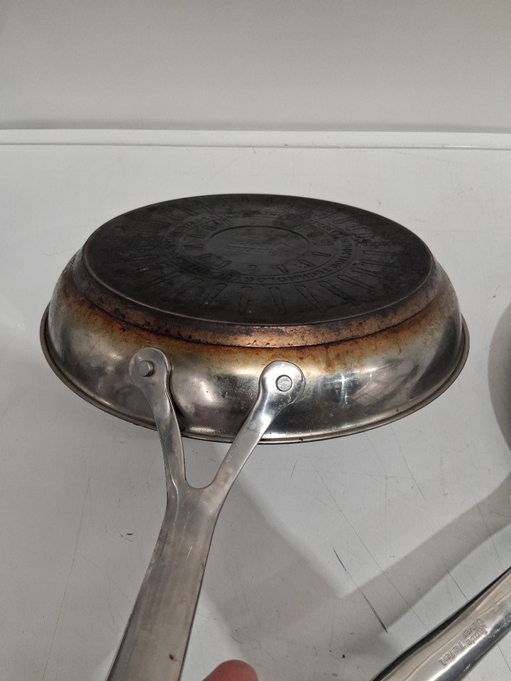 please note this item does not come with the 8" pan. these do show obvious signs on use both inside and on the bottom of each pan. will need a good clean.