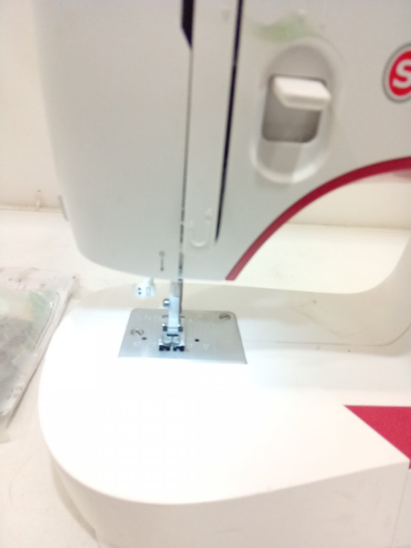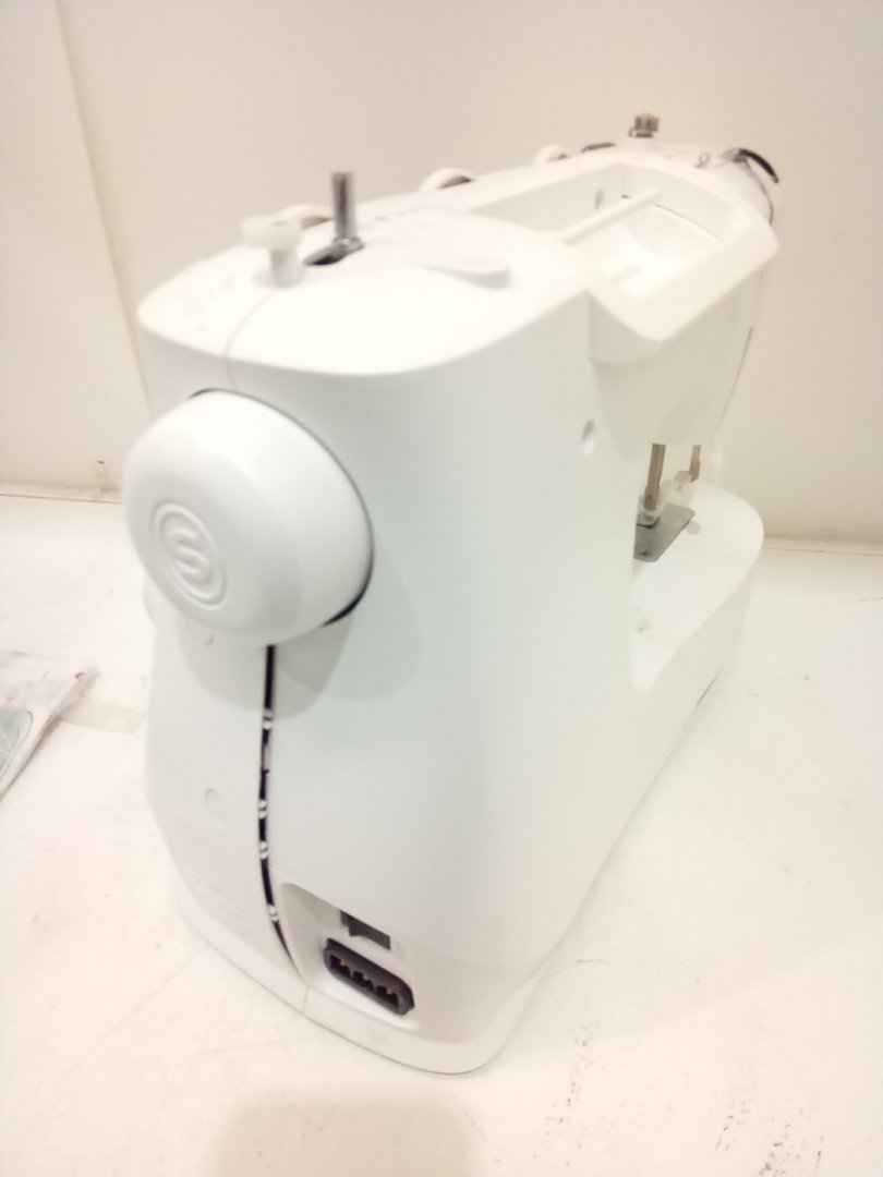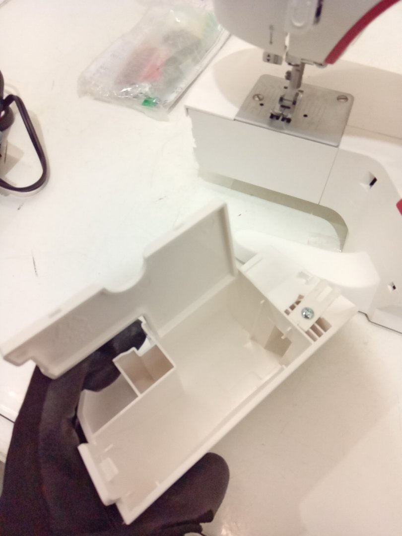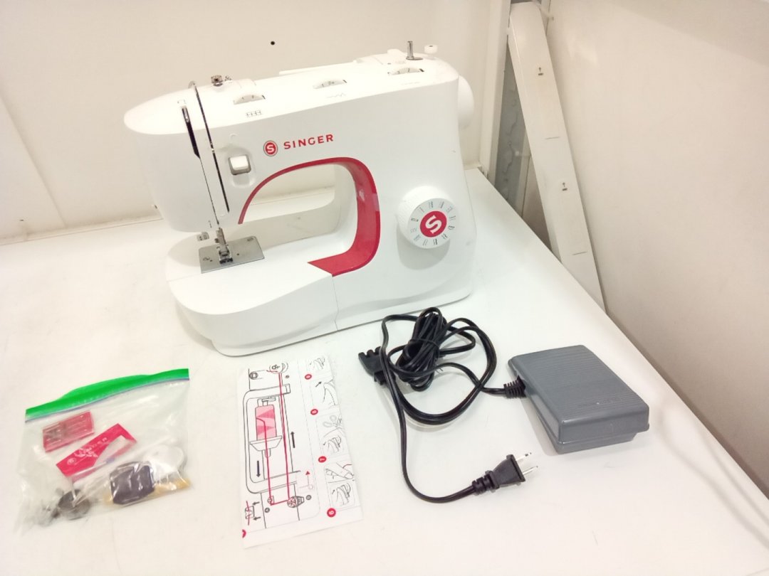Various scuffs suggest prior use. The seam on the side where the knobs are is loose, but only affects the outer casing. The set is missing the original/default needle, but comes with others. Set may be missing additional accessories, but comes with basics including bobbins.