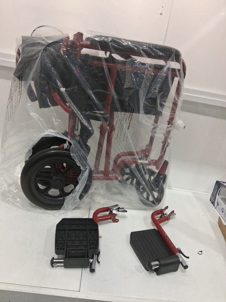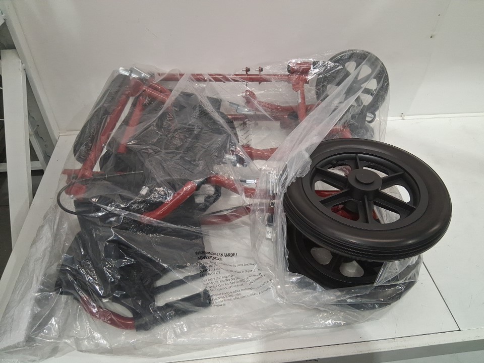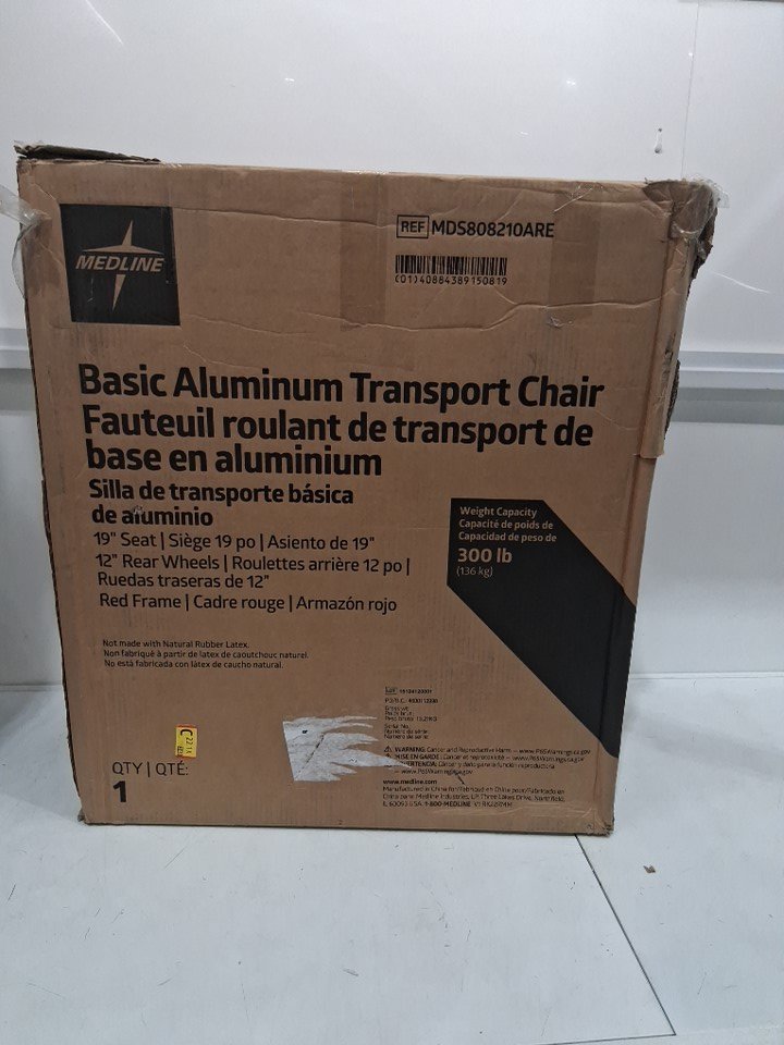 MEDLINE BASIC ALUMINUM TRANSPORT WHEELCHAIR - 19" - 12" REAR WHEELS WITH BRAKES - 300lbs capacity - RED (MODEL: MDS808210ARE)