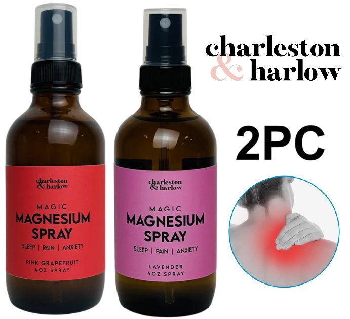 2PC Charleston & Harlow magic magnesium spray for sleep, pain & anxiety - pink grapefruit / lavender - 4oz/each