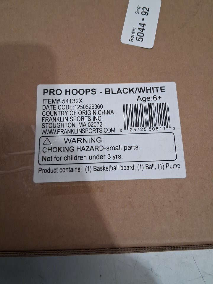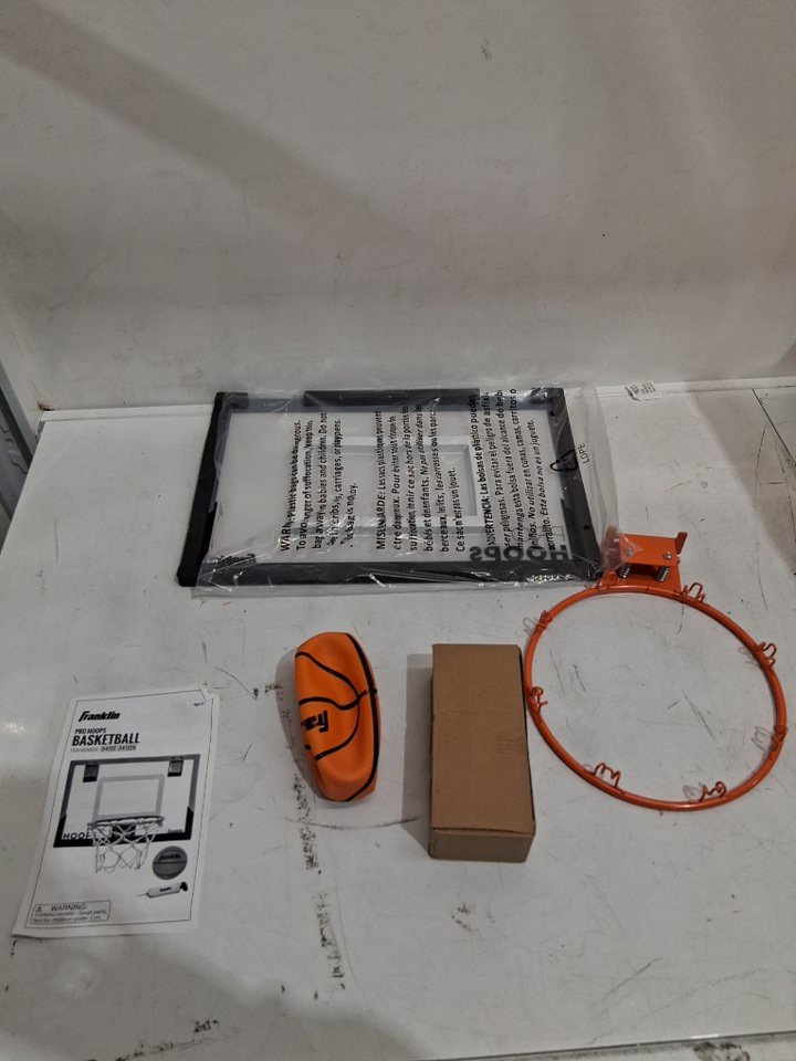 FRANKLIN SPORTS PRO HOOPS, OVER THE DOOR HOOP WITH MINI BASKETBALL & PUMP- 17"- BLACK/WHITE- (MODEL:54132X)