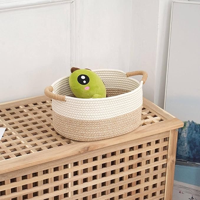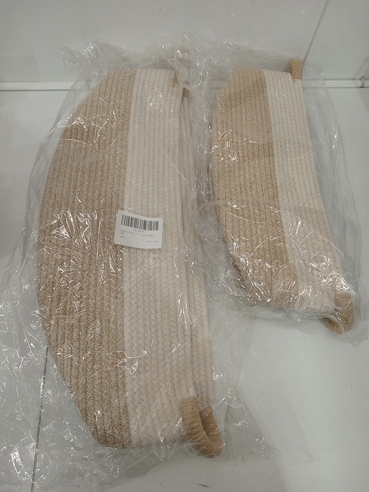 2PC round cotton straw basket for storage - large (24" x 9") / small (18" x 7") - beige / brown