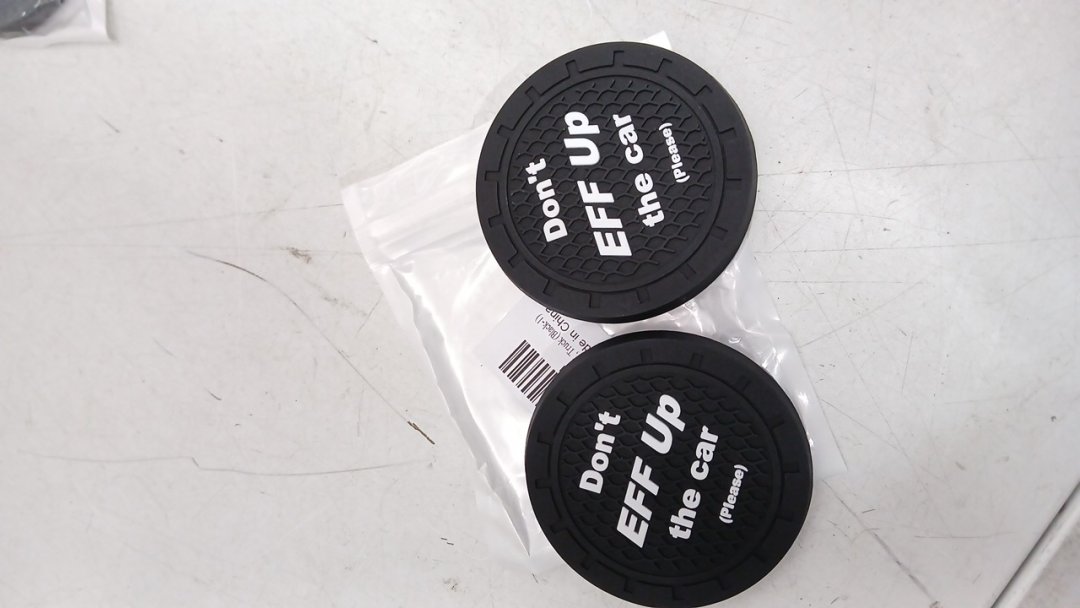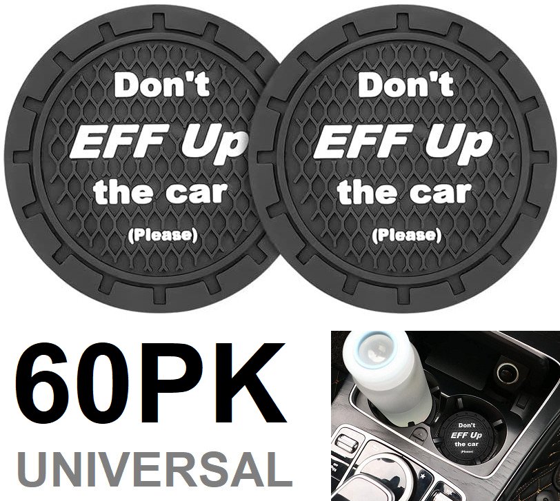 60PK NON-SLIP ANTI-SCRATCH universal silicone vehicle cup holder coasters "don't eff up the car please" - black
