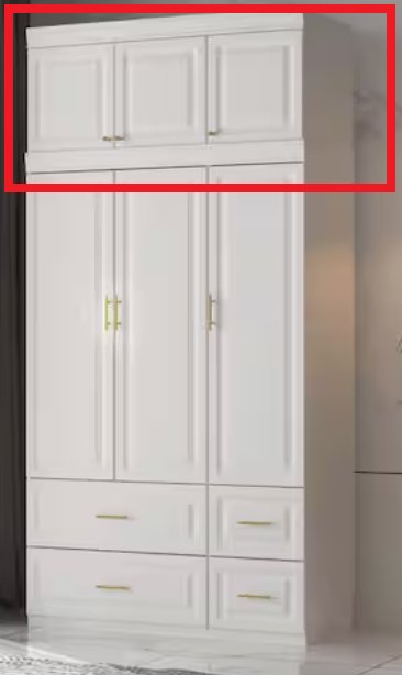 Note: this item is a top cabinet for an armoire. Armoire not included. This item has minor chipping to the corners of some of the boards.