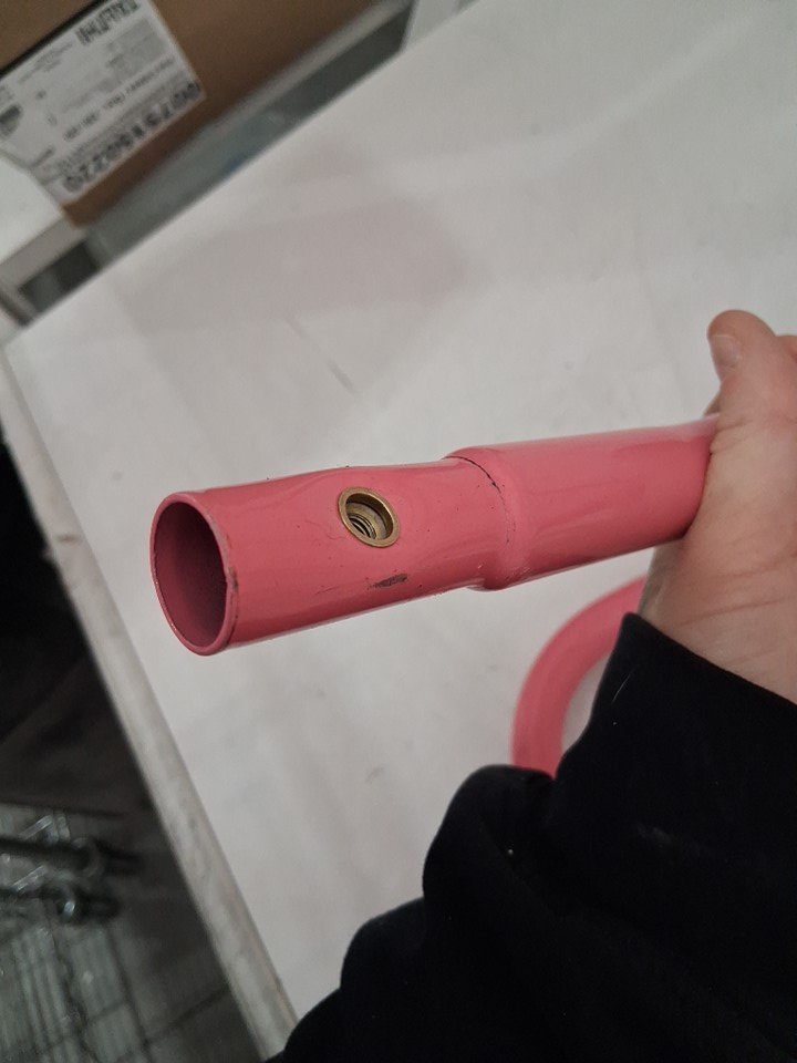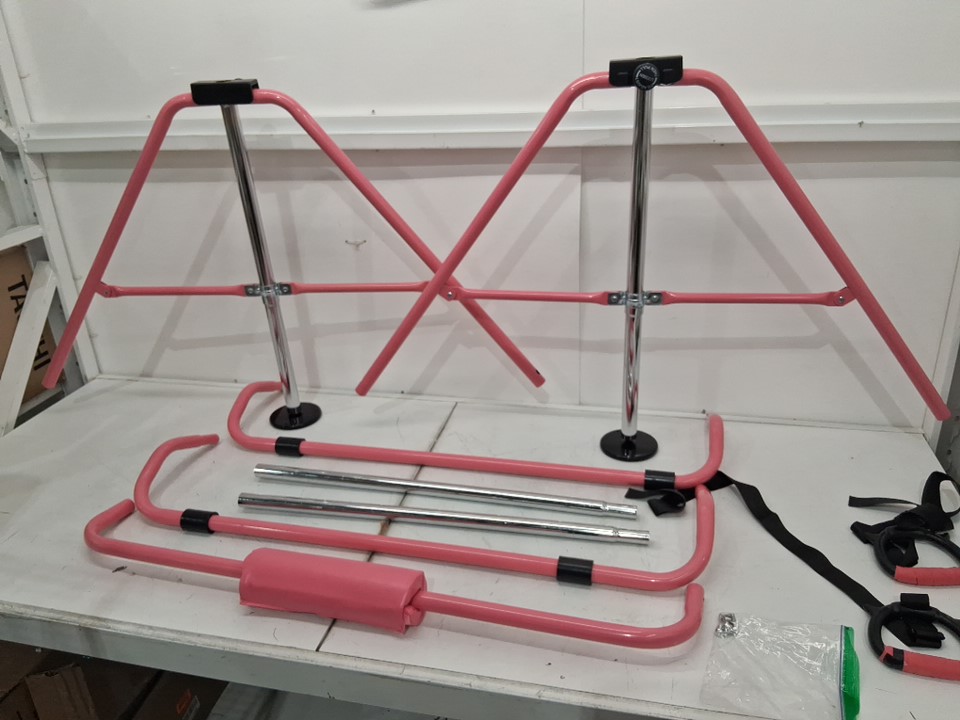 Poles have blemishes from previous assemble. Hardware is in a ziploc bag, some hardware maybe be needed for assembly